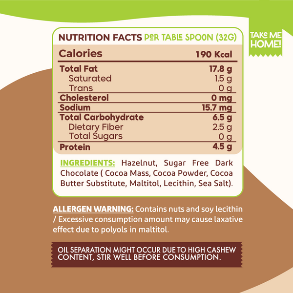 زبدة البندق الخالية من الذنب عبارة عن عجينة من البندق المحمص مع إضافة الشوكولاتة الداكنة مع قليل من ملح الهيمالايا الوردي. تحتوي زبدة البندق على قيمة غذائية عالية من البروتين والدهون الصحية بالإضافة إلى مجموعة من الفيتامينات والمعادن الأساسية وهي غنية بأحماض الأوميغا الدهنية. تحتوي زبدة البندق العضوية نيشن نيشن على 4.5 جرام من البروتين لكل ملعقة كبيرة.