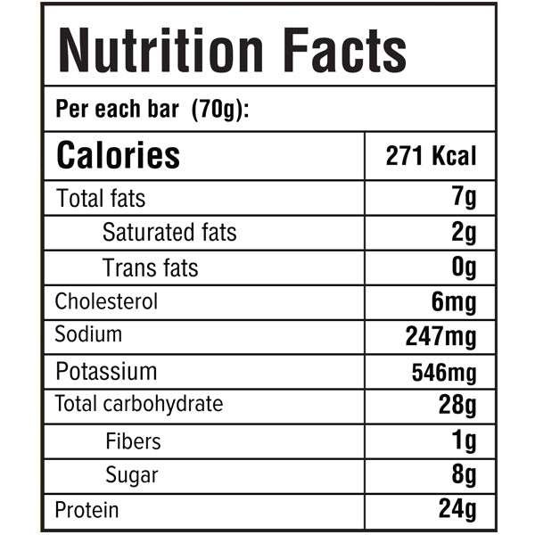 مع زيت جوز الهند وطبقة من الشوكولاتة اللذيذة، فهو ملئ بـ٢٤ جرام من البروتين (بروتين مصل اللبن المركز - بروتين مصل اللبن المعزول - بروتين اللبن المركز)، و٢٨ جرام من الكربوهيدرات، بالإضافة إلى ٢٧١ سعر حراري.