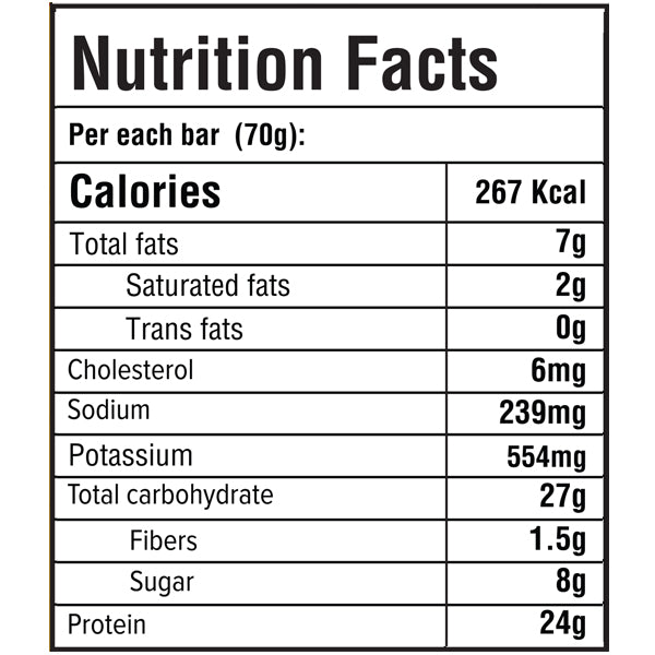 مع زيت جوز الهند وطبقة من الشوكولاتة اللذيذة، فهو ملئ بـ٢٤ جرام من البروتين (بروتين مصل اللبن المركز - بروتين مصل اللبن المعزول - بروتين اللبن المركز)، و٢٨ جرام من الكربوهيدرات، بالإضافة إلى ٢٧١ سعر حراري.