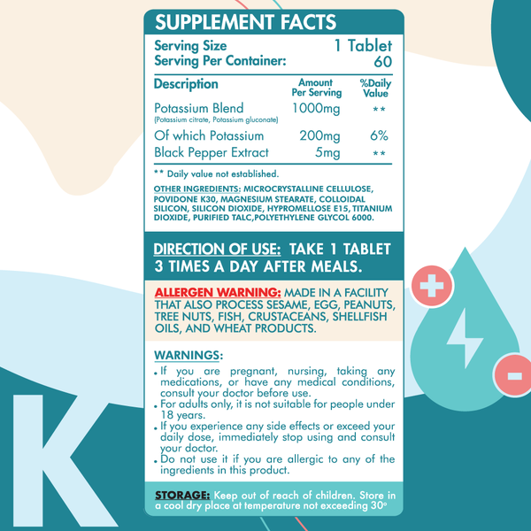 Organic Nation Potassium Blend Tablets are meticulously designed to enhance your athletic performance and overall health. Each tablet delivers a potent dose of 1000 mg of Potassium Blend, including Potassium Citrate and Potassium Gluconate, along with 5 mg of Black Pepper Extract for maximum absorption of Potassium into the body.